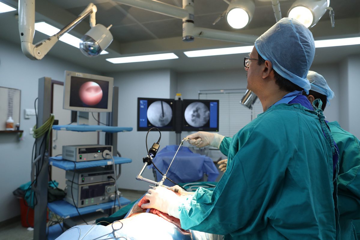 The operation theatre suite is well designed to cater to modern needs. It has four fully functioning operating rooms. All kinds of open and endoscopic/ laparoscopic procedures are done including Renal Transplant. The broad urological armamentarium includes 2 C-arm image intensifiers, laser equipment for both stones and Prostate, Laporoscopysets, complete upper and lower urinary tract equipment including Nephroscope, Rigid and Flexible Ureteroscopes, Swiss Lithoclast, high power diathermy machine and high definition endo camera with monitor.